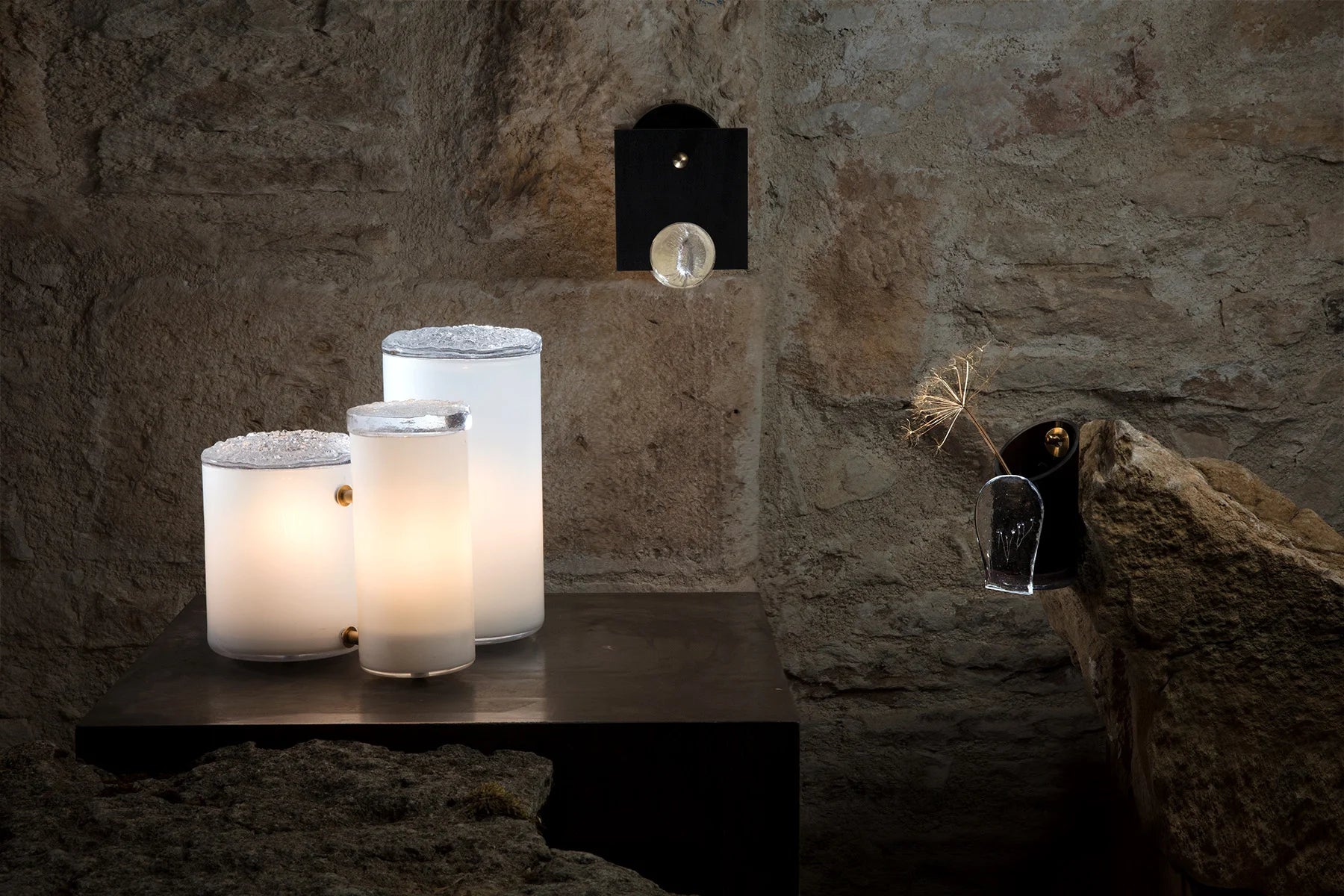 They then light up, on a table or a wall, to compose collectible design pieces. Thus, these elements pass from one world to another, from vegetable to mineral, from fleeting to immutable.